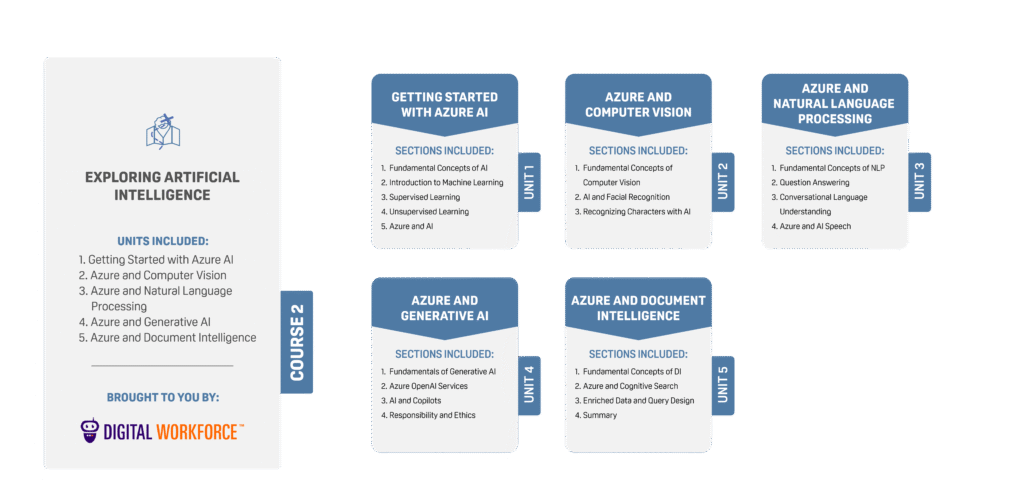 Building upon the solid cloud foundation you've established, this course invites you to explore the principles of AI and their practical applications in the Microsoft Azure landscape. From machine learning fundamentals to understanding cognitive services, this course is your gateway to understanding the transformative power of intelligent technologies.